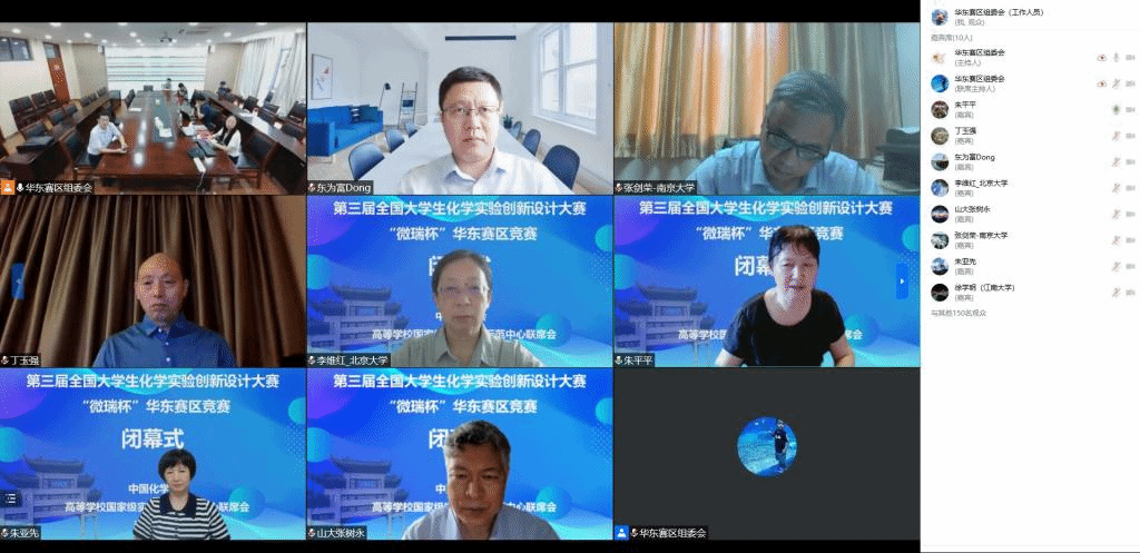 7月8-10日,由中国化学会和高等学校国家级实验教学示范中心联席会主办、江南大学承办的第三届全国大学生化学实验创新设计大赛“微瑞杯”华东赛区竞赛通过线上的方式在我校成功举行,本届竞赛共有来自华东赛区46所高校的98支队伍参与。开幕式在7月9日上午举行,华东赛区竞赛组委会主任、江南大学副校长堵国成教授和教育部化学类专业教指委秘书长、华南赛区竞赛委员会主任、华东赛区竞赛专家组召集人、厦门大学朱亚先教授出席并致辞,国家级实验教学示范中心联席会化学化工学科组组长、华东赛区竞赛委员会主任、南京大学张剑荣教授和来自参赛高校的多位领导、参赛师生出席。开幕式由华东赛区竞赛组委会副主任、beat365官方网站院长东为富教授主持。