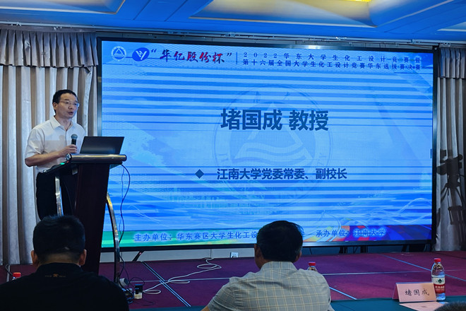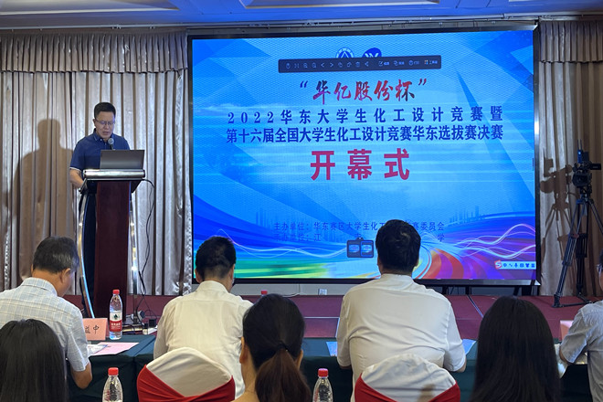 2022年7月31日至8月5日,由中国化工学会、中国化工教育协会主办,江南大学承办的“华亿股份杯”2022华东大学生化工设计竞赛暨第十六届全国大学生化工设计竞赛华东选拔赛在我校隆重召开。来自浙江大学、华东理工大学、江南大学等61所高校的队伍参加了本次竞赛。开幕式在8月4日上午举行,江南大学党委常委、副校长堵国成教授,全国大学生化工设计竞赛华东赛区竞赛委员会主任、华东理工大学我院党委书记朱学栋教授和浙江华亿工程设计股份有限公司袁益中董事长分别发表了热情洋溢的开幕词。华东赛区竞赛委员会秘书长、华东理工大学我院副院长周兴贵教授,华东理工大学我院副院长徐至教授,beat365官方网站潘庆伟书记和来自参赛高校的多位领导、参赛师生出席。开幕式由beat365官方网站院长东为富教授主持。